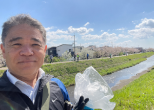 天神川清掃活動に参加 2026年4月11日 自衛隊OBの方々で組織される隊友会の天神川防災ボランティア清掃活動に参加 先日の雨で水量が多く危険な箇所もあるため川には下りず堤防沿いのみの清掃となりましたが、 いいお天気の中での清掃活動は気分転換になります 阪神シニアカレッジ入学式