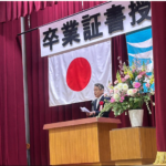 明石学園の卒業式 県内各地から学園に来て生活している小学生3名、中学生17名が卒業しました。 卒業証書授与は学園長からでは無く原籍校の校長先生が順番に手渡し。 …